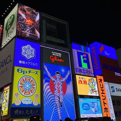 Dōtonbori. Célèbre rue d’Osaka pour ses magasins, ses restaurants et ses enseignes lumineuses.
